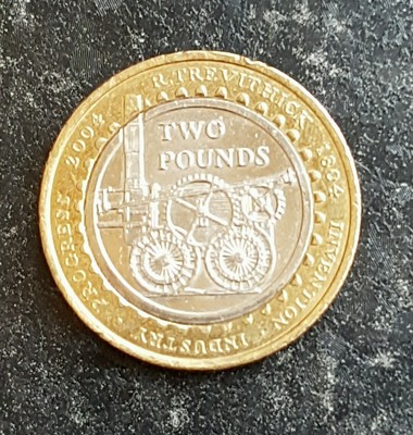 RARE R Trevithick Invention Industry 1804-2004 2pound Coin. Other Versions of the Invention Industry 2 Pound Coin. Initially the first bi-metallic 2 coins were non-commemorative and featured the ages of development.
